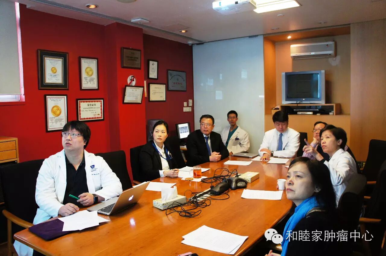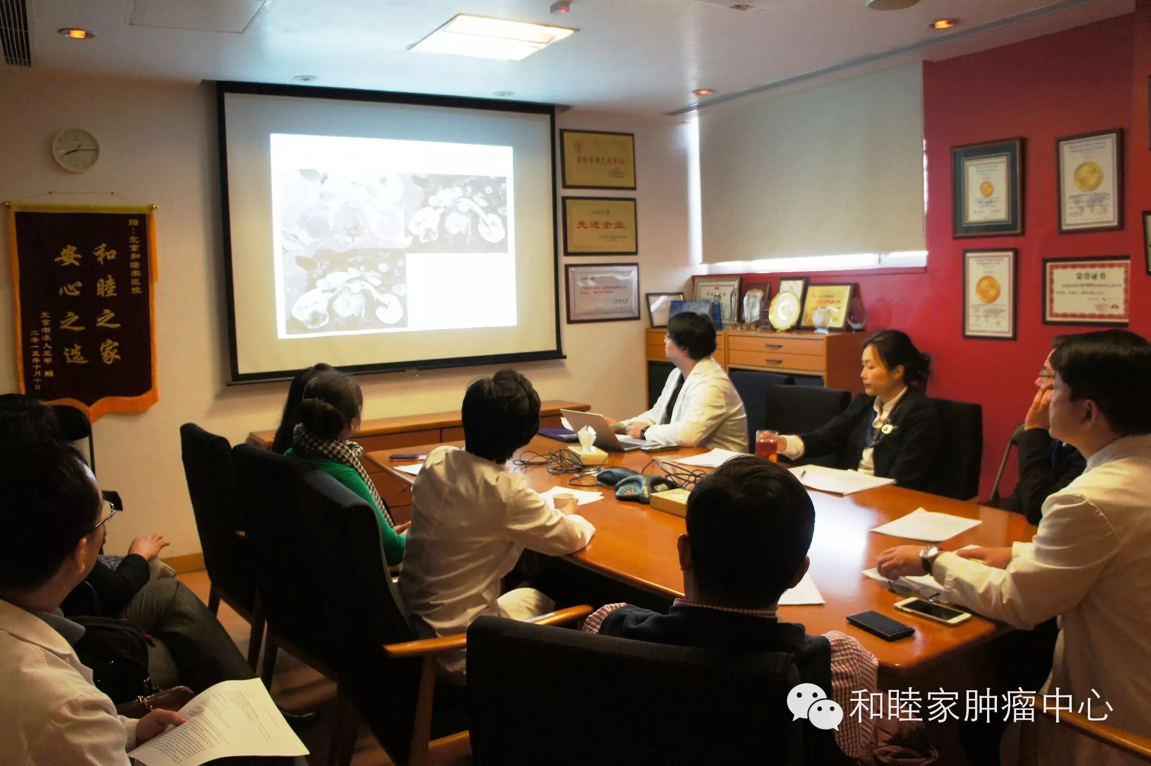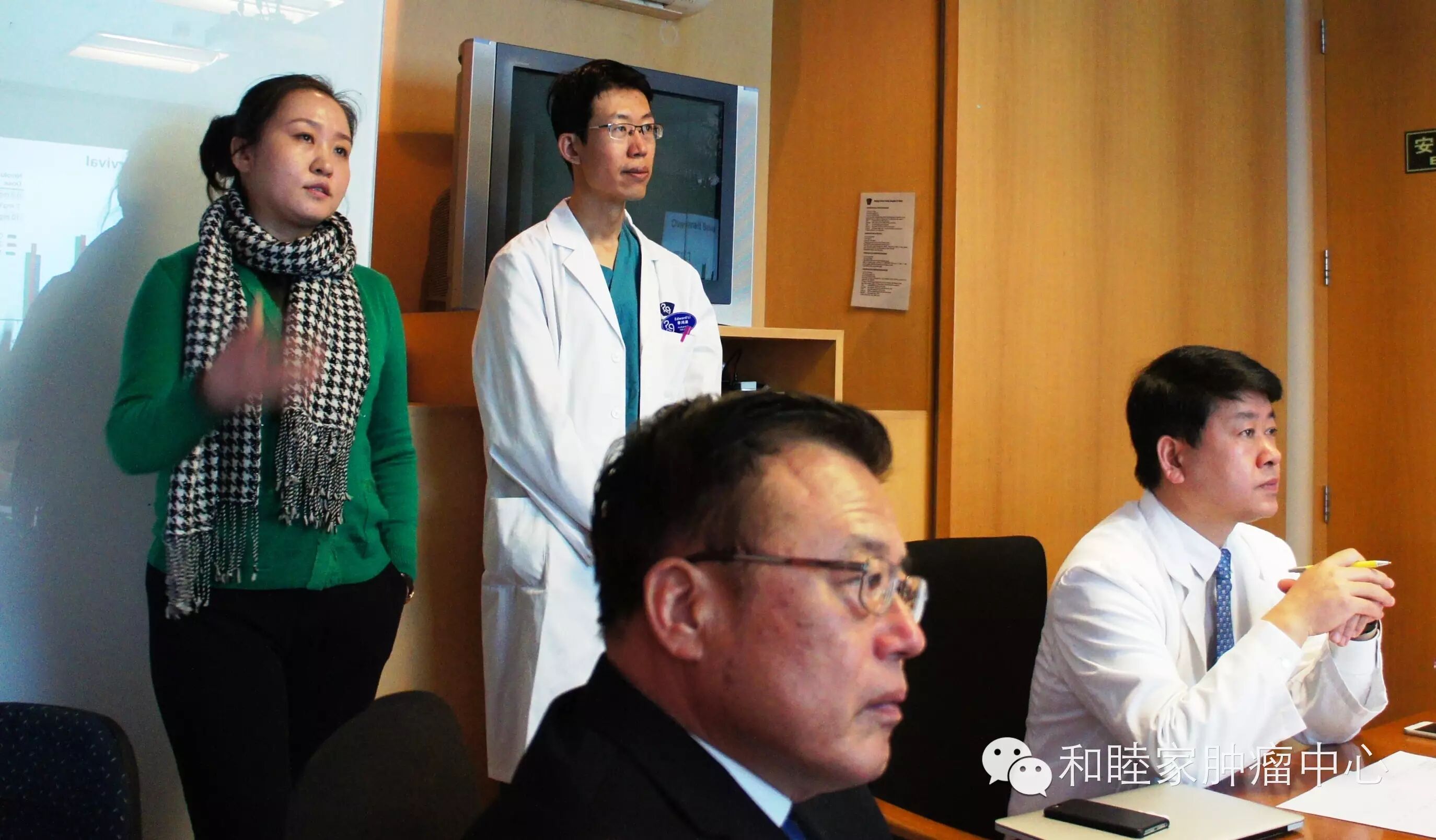 肿瘤科顾艳斐医生(左一)回顾了肾细胞癌治疗的发展历程,目前标准治疗带来的获益,最前沿的免疫治疗原理和最新临床试验数据,建议在该患者脊柱重建手术两周后开始使用舒尼替尼进行靶向治疗并规律随访,延长患者的生存期。
